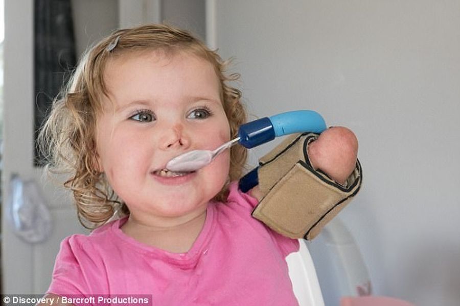 Сегодня она уже умеет самостоятельно есть и играть. Своим примером малышка вдохновляет сотни семей.