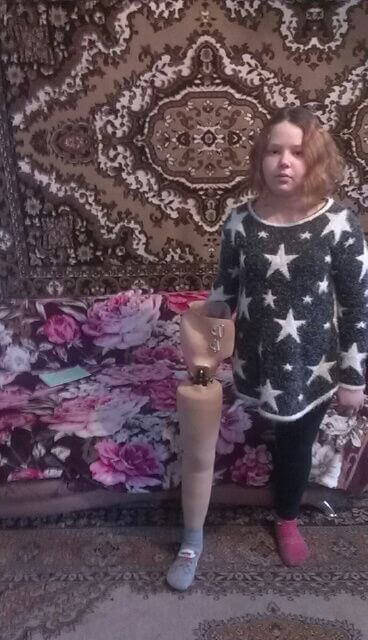 Несколько лет назад после тяжелого заболевания девочке ампутировали ногу до самого таза. В ноябре 2015 года в Санкт-Петербурге ей поставили сложнейший протез. Менять его нужно через год. Из своего старого протеза девочка практически выросла. Семья собирает деньги на новую поездку.