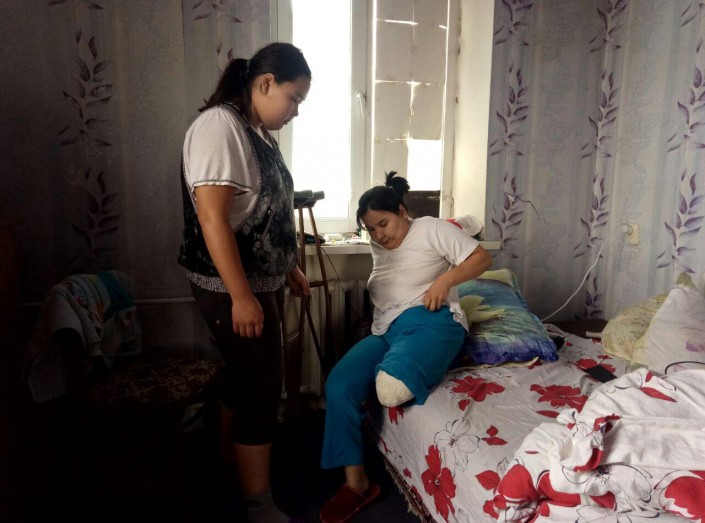Сейчас женщина пытается самостоятельно за собой ухаживать, но часто приходится прибегать к помощи старшей дочери Разии, которая также является инвалидом: у нее болят почки, мочевой пузырь, есть проблемы со спиной и гормонами. Девочка в свои 14 лет следит не только за мамой, но и за трехлетним братом Арманом.