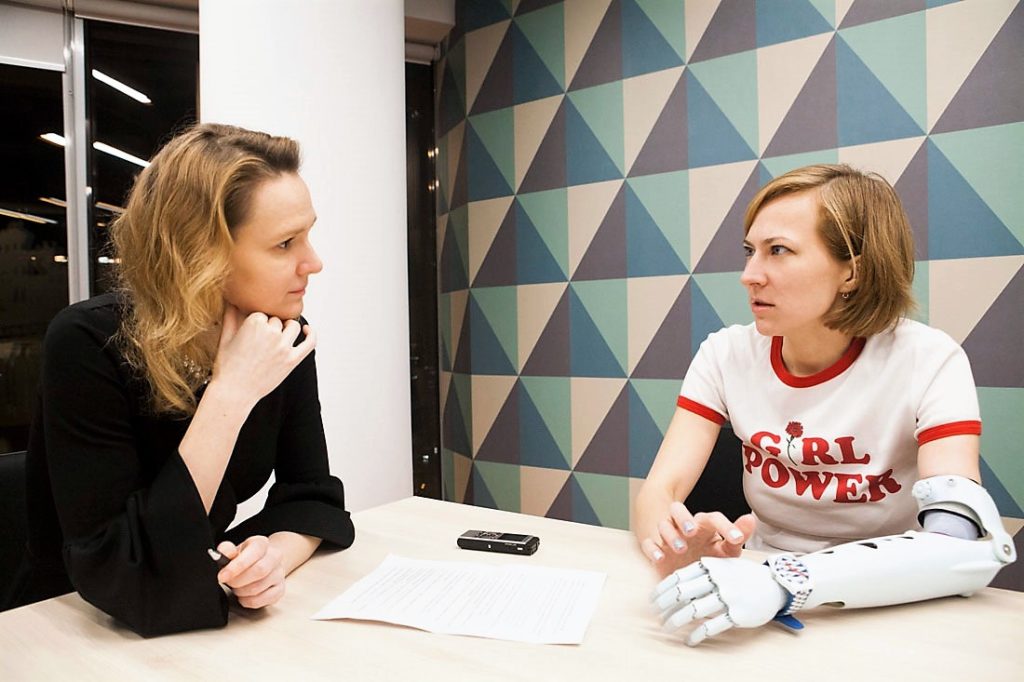 Затем мне предстояло экспериментировать в Москве. Помню, в ночь накануне выхода на работу, когда предстояло показать коллегам реальную Таню, я сидела и плакала — было страшно. Обратилась за советом к психологу, написав ему сообщение, а он ответил народной мудростью: «Утро вечера мудренее». И правда, проснувшись, я как ни в чем не бывало оделась и пошла на работу с «девайсом», который был виден всем. И все прошло нормально — никаких неадекватных высказываний, просто живой интерес. Один коллега спрашивал, как протез работает, причем уточнял раз пять. Да, айтишники такие: их занимает функциональность любой вещи.
