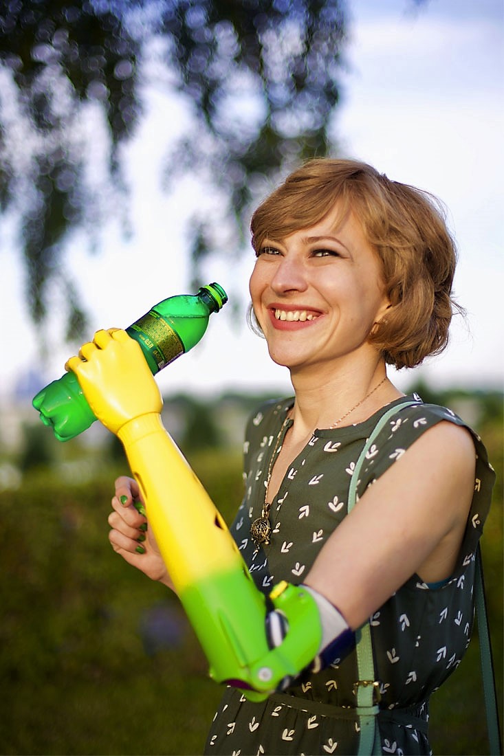 — При поступлении на нынешнюю работу я еще маскировалась. Многие сотрудники даже не догадывались, что у меня нет руки. Иногда мне кажется, люди с протезами очень подходят для амплуа шпионов — так много нам приходится скрывать (смеется). Но в прошлом году, когда я уже состояла в штате Сбербанка, психолог предложил эстетизировать протез, сделав его цветным и, соответственно, заметным. Я решилась на этот шаг. Впервые новый образ примерила на улицах Нью-Йорка, куда приехала на отдых к подруге. Американцы, как я и предполагала, восприняли меня абсолютно нормально — ну идет «девушка-киборг», что тут невероятного?