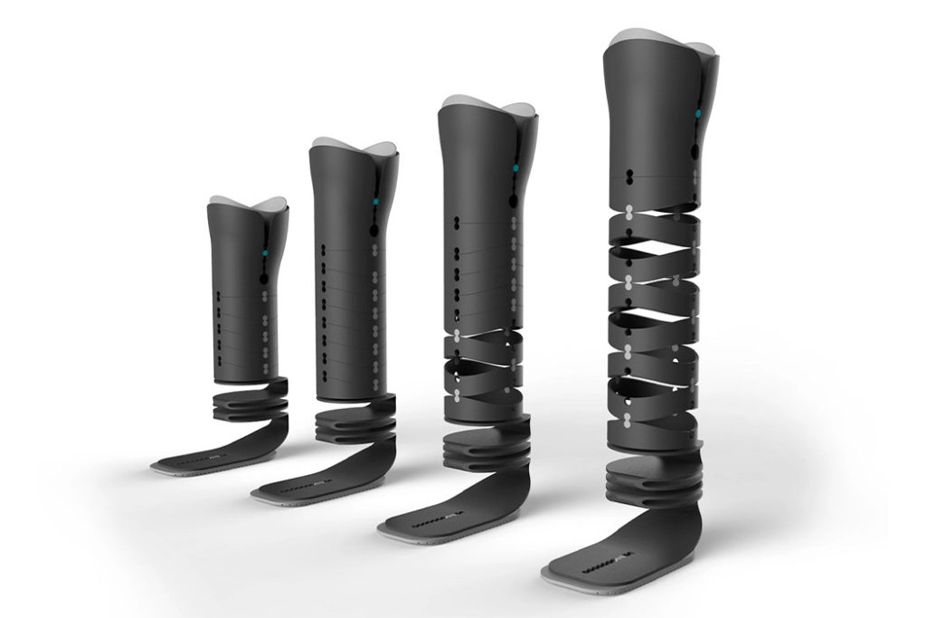 Концептуальный протез ноги призван сделать жесткое медицинское оборудование более гибким, особенно для того, чтобы оно безупречно вписалось в жизнь растущего ребенка. Пользователь будет носить ногу, и ее можно будет регулировать по мере роста, чтобы обеспечить оптимальную и удобную посадку.