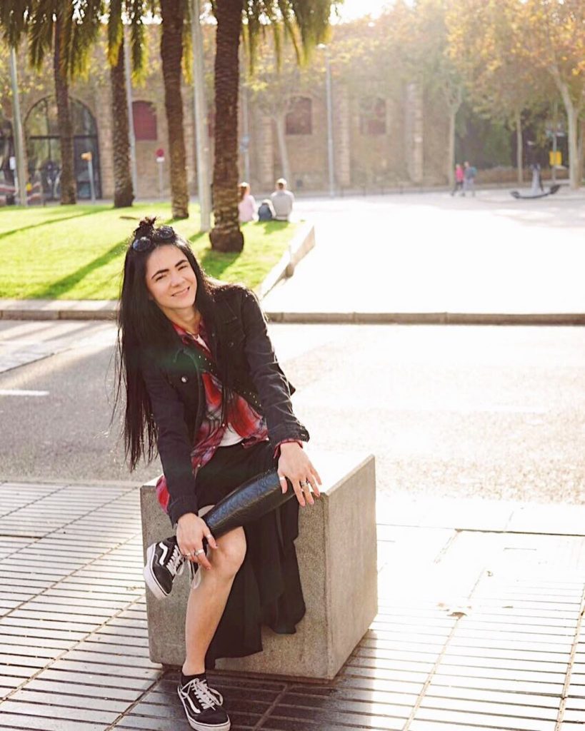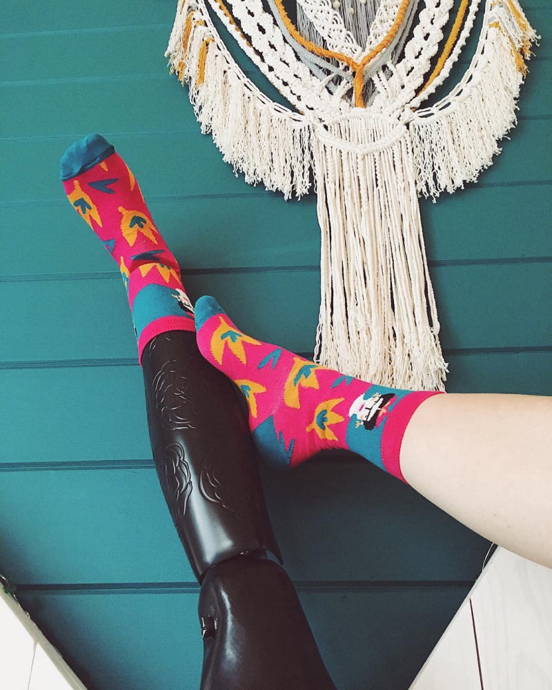 Юля зашла в кафе в ярком разноцветном пуховике и в черных кюлотах, из-под которых виден протез. Она не пытается его спрятать, наоборот, считает это крутым продолжением себя, летом носит только юбки и платья. Для нее это, как очень дорогой аксессуар.