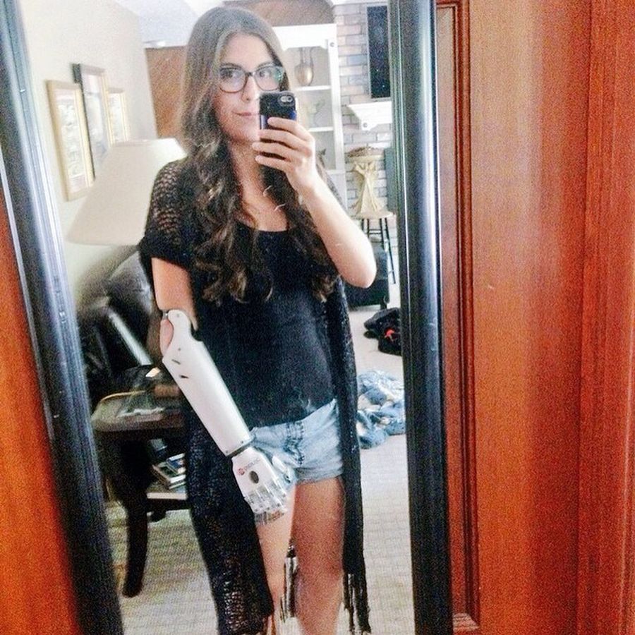 А это Анжел Гиуфрия из США. У нее врожденная патология левой руки. Она родилась без кисти и предплечья, но свой первый протез она получила уже в 4 месяца.