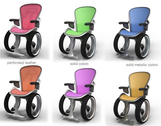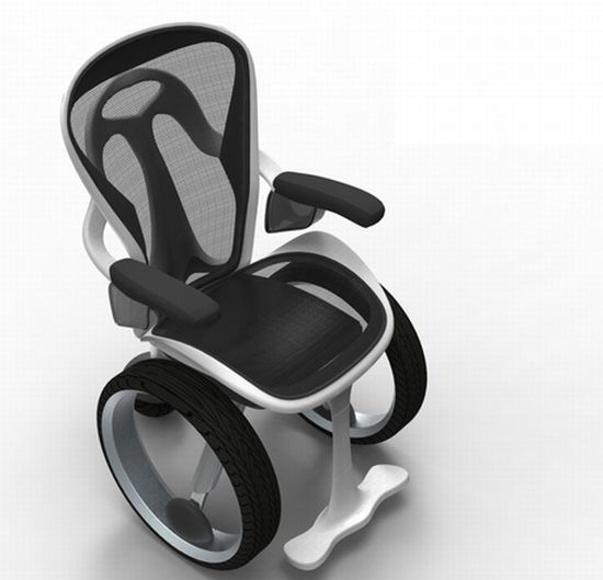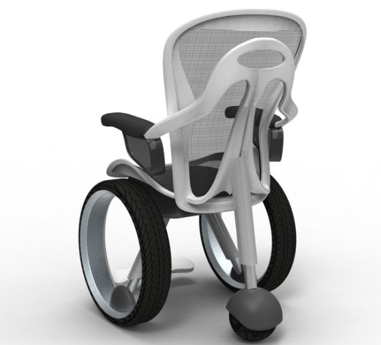 Вдохновившись дизайном немецкого автомобиля Audi R8, автор сделал самый большой акцент на привлекательность колес своего творения. Это колеса будущего, в них нет ничего лишнего: никаких спиц или чего-то подобного, два колеса крепятся на кронштейны, отходящие от корпуса кресла.