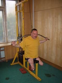 После ампутации обеих нижних конечностей использовались тренажеры — «бицепс» для развития мышц плеча, «эспандер грузовой» (для мышц верхних конечностей, мышц груди); тренажер «для развития икроножных мышц», который применялся в комплексе со скамьей универсальной и использовался для тренировки мышц верхних конечностей и плечевого пояса; тренажер «для развития широчайших мышц спины», «для развития мышц плечевого пояса», «брусья консольные» (для развития мышц брюшного пресса).