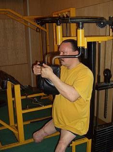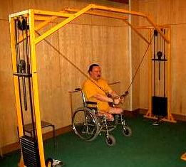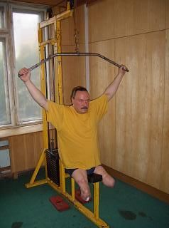 Упражнения при дефектах обеих нижних конечностей. Для тренировки мышц спины осуществлялись циклические упражнения в виде тяги штанги вертикально вниз за голову или к груди на тренажере «для развития широчайших мышц спины».