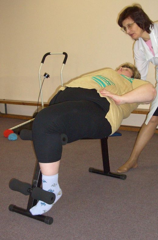 У больных III степенью ожирения в положении лежа на животе нередко возникали одышка, неприятные ощущения за грудиной в связи с увеличением давления на внутренние органы, давящая боль в животе. В подобных случаях упражнения для мышц спины проводилась из исходных положений лежа на боку или сидя. Заключительная часть включала упражнения на растяжение, общеразвивающие в медленном темпе и релаксирующие.