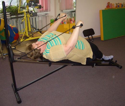 Определенным преимуществом использования тренажеров являлась относительная легкость освоения техники упражнений, безопасность и удобство внесения изменений в нагрузку при помощи варьирования величины отягощений. При проведении занятий использовались упражнения, требующие вовлечения большого количества сохраненных мышечных групп или наиболее крупных из них. Предпочтение отдавалось методу круговой тренировки.