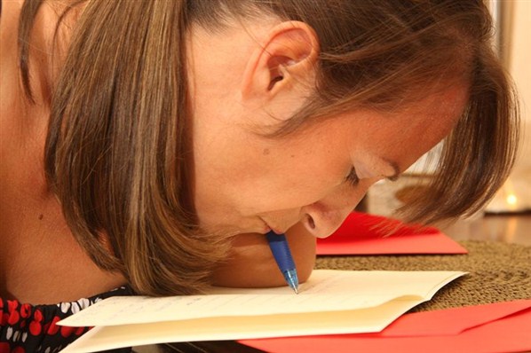Она пошла в обычную школу, где она писала с помощью рта. Первый настоящий друг у нее появился в 13 лет.
