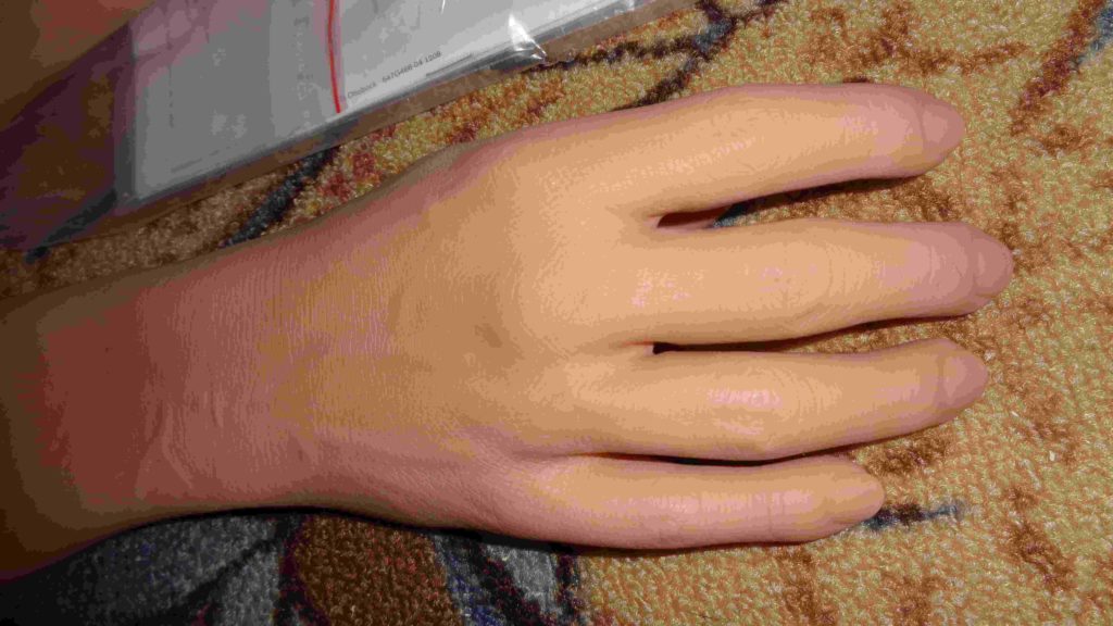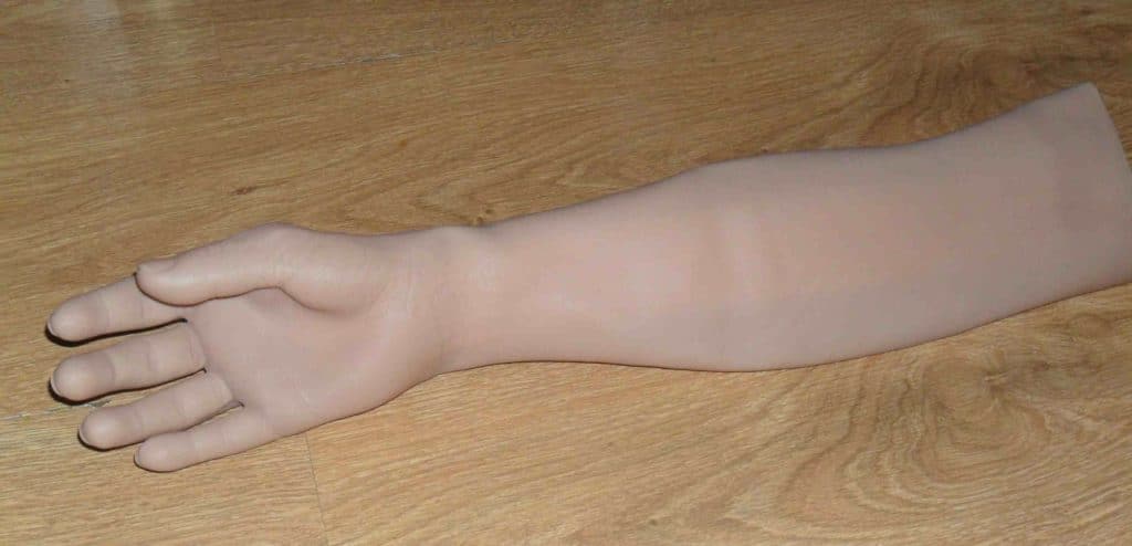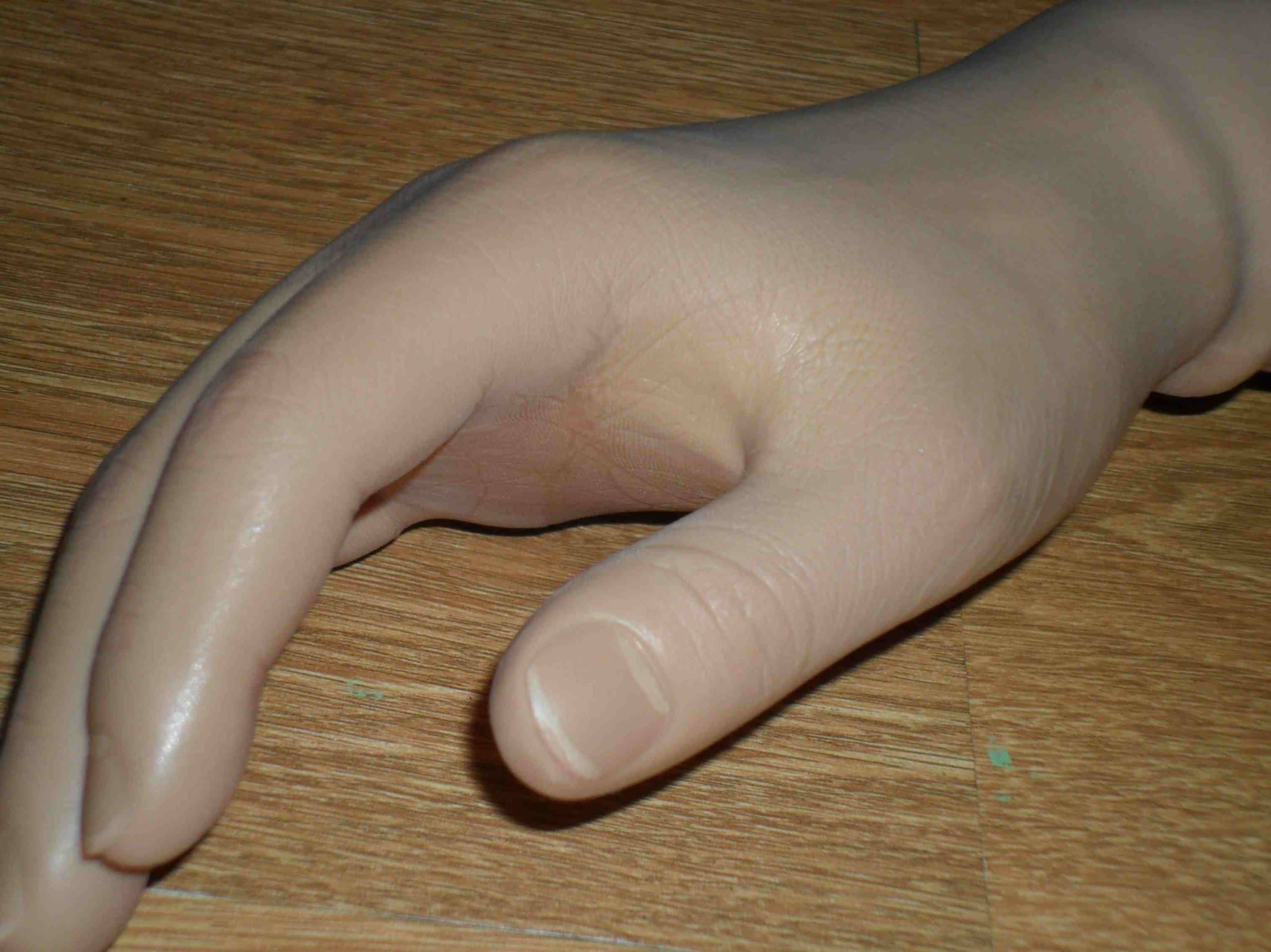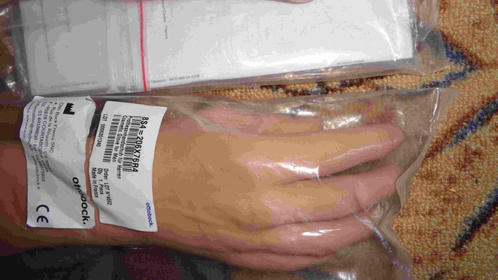 Удлиненная силиконовая косметическая оболочка для электромеханических, миотонических, биоэлектрических и механических протезных кистей с ярко выраженным косметическим эффектом, детализированными папиллярными линиями, венами и суставами пальцев кисти