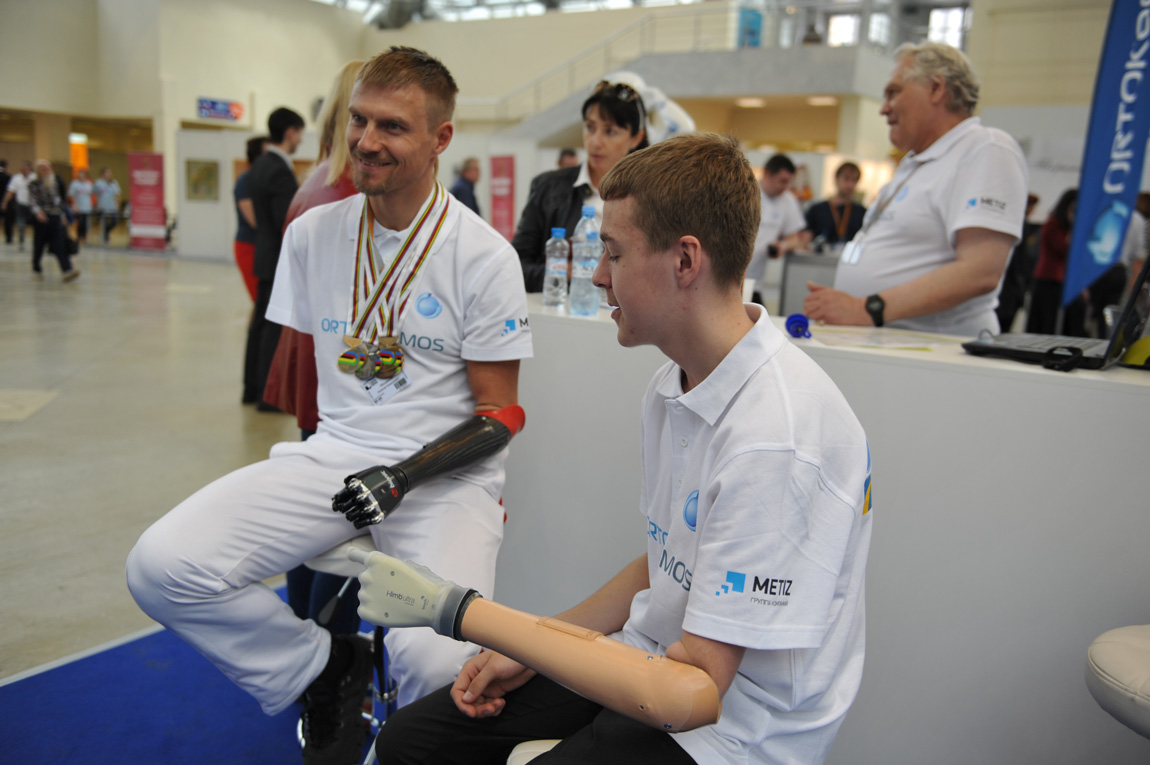 Эксклюзивно на стенде королёвской компании были представлены образцы биоэлектрических протезов рук английской компании Touch Bionics. Кисть Digits разработана специально для пациентов с частичной ампутацией ладони и пальцев и не имеет аналогов в мире. С её помощью человек может выполнять множество самых обычных повседневных действий: рисовать, завязывать шнурки, готовить. Каждый палец имеет отдельный привод. Кисть Revolution используют при полном отсутствии кисти и более высоких ампутациях. Её посетителям выставки демонстрировал двукратный рекордсмен, чемпион мира по паравелоспорту Алексей Обыденнов. «С помощью биоэлектрической кисти можно брать хрупкие предметы, то же яйцо куриное, не раздавив его. Можно даже регулировать силу хвата», — рассказывает Алексей. Как правило, специалисты настраивают для пациента основную группу движений руки. При необходимости пациент может сам изменить настройки, подключившись к протезу через Bluetooth с мобильного телефона. В программу кисти Revolution даже включён режим обучения, с помощью которого пациент может создать собственные жесты. Сегодня в России только специалисты научно-производственной фирмы «Орто-Космос» имеют сертификат на работу с этими протезами.