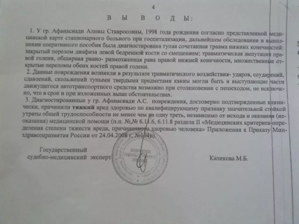 — Как нам кажется, следствие сильно затягивается. Мне вообще непонятно, как оно ведется. Следователь брал у меня показания. Он также привозил мне экспертизу, в которой не указано большее количество полученных мною травм. Написано только, что у меня ампутирована голень. Но голень — это до колена. А где мое правое колено, если у меня, по экспертизе, ампутирована только голень? Но эксперт отказалась исправлять экспертизу, ссылаясь на то, что она «и так много написала», — возмущается девушка.Смущают фельдшера и ее маму и другие моменты.