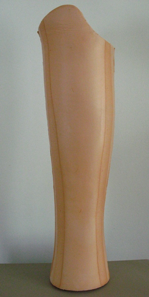 Большое значение для качества протеза ноги имеет приемная гильза, которая выполняет роль связующего звена между самим пациентом и дистальной частью конструкции. Форма приемной гильзы, качество ее подгонки влияет на управление протезом, существенно сказывается на ходьбе пациента в протезе ноги и общем комфорте в носке. Максимальный охват всей наружной поверхности культи, усиление функции усеченных мышц создает возможность для ее адекватной нагрузки, улучшает управление протезом, что достигается при изготовлении контактной гильзы протеза. Приемная гильза изготавливается индивидуально по гипсовому позитиву культи, отмоделированному по принципу тотального контакта культи с приемной гильзой. В настоящее время изготавливаются из термопластичных полимерных материалов, ообеспечивающих их высокие прочностные характеристики, малый вес, устойчивость к агрессивным средам, высокое качество, возможность локальной подгонки при разогреве и т. д. Наибольшее распространение получили слоистые пластики, а также листовые термопласты.