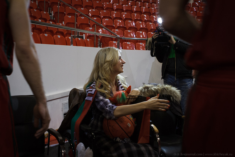 Наперевес с фотоаппаратом я пошел встречать Иру у входа в спортивный комплекс, куда её пригласила Краснодарская баскетбольная команда “Локомотив”. Для девушки это был первый после аварии выход в “новый” свет, для меня — первое знакомство с ней. Это была одна из тех ситуаций, в которых ты заранее в голове прорабатываешь каждую минуту будущей встречи, но при этом не можешь выбрать одну четкую позицию: что говорить? шутить или нет? куда смотреть, как здороваться…? Скажу честно — слегка побаивался. Я в тот момент готов был увидеть скорее лишь печаль, опровергающую все те улыбчивые интервью с ней, что я видел.