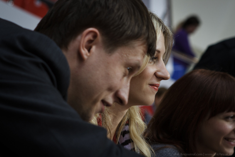 Ира расположилась на углу поля, за линией аута — слева от нее сидела сестра, справа ее друг Константин. К слову говоря, через Костю я и вышел на Иру — он один из организаторов сбора средств для помощи Ире. К ней подходили люди, здоровались, а она улыбалась в ответ. Я стоял в стороне продолжая слегка опасаться — чувство, схожее с боязнью прикоснуться к чей-то ране и сделать больно. Но она улыбалась и шутила! До конца матча так и простоял — слегка в стороне, делая вид, что наблюдаю за игрой, а сам периодически вылавливая моменты в видоискатель и фотографируя — пытался уловить настоящую новую Иру Бухтиярову. Я фотографировал ее, внимательно наблюдающую за игрой, позирующую мне на камеру, улыбающуюся и смеющуюся. За 2 часа почти 600 кадров и практически с одного ракурса. После игры, попрощавшись с Ирой, меня подвезли ее друзья — Виталий с женой Татьяной. По дороге я задавал им все те же вопросы, а в ответ слышал все те же рассказы о сильной, веселой и улыбающейся Ире.