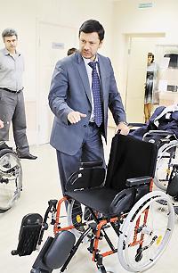 – И многим людям трудно даже представить, что существуют инвалидные коляски, на манипуляцию с колесами которых требуется меньше минуты, – вступает в разговор генеральный директор компании «МК-инвест» Карен Арутюнов. – Да я сейчас продемонстрирую это.