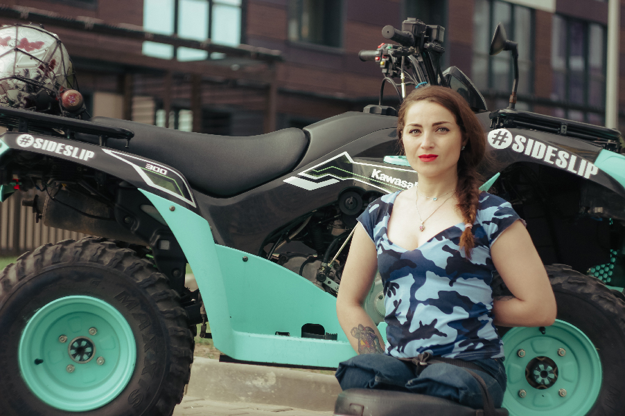 — Инвалидной коляской я перестала пользоваться еще в детском доме — пересела на тележку. И поняла, что она намного удобнее, хотя и смотрится неэстетично. Я становилась более самостоятельной. Меня это прельщало: не надо никого просить, можно передвигаться в любое время дня и не зависеть от людей. Сейчас я езжу на машине молодого человека и на такси. В сезон — на квадроцикле. Он маленький, удобный, юркий, его можно везде припарковать. Получаю удовольствие от того, что еду сама. Я свободна. Люблю мотоциклы, люблю их чинить. Кажется, мотоциклы, квадроциклы и автомобили я понимаю и чувствую лучше, чем косметику и одежду. Хотя в моде я тоже неплохо разбираюсь.