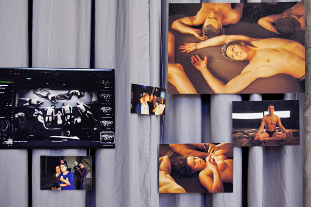 На стене рядом с главной работой размещены фотографии закадровой съемки: увлеченность процессом, расслабленность и непринужденность моделей завораживают. Люди, от которых мы привыкли отводить взгляд, напротив, гипнотизируют.
