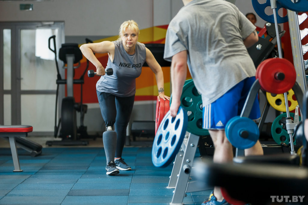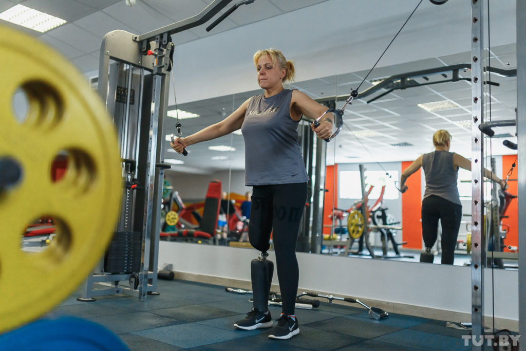 Тот абонемент в «Физрук GYM» для Светланы стал и вызовом, и мотивацией: как так, ей сделали подарок, а она не покажет результат? Набралась смелости, позвонила в зал: у меня протез, возьметесь ли тренировать? В ответ — ни сомнений, ни удивления: приходите заниматься. На первую тренировку Светлана надела то, что было: вместо спортивной формы — обычные штаны и майка, вместо кроссовок — повседневная обувь без каблука.